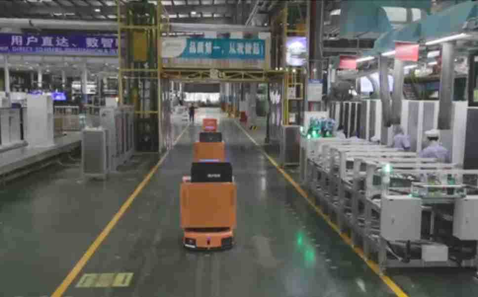 为车载冰箱物流配送打造的智能解决方案,,,,包含产中物流通过潜伏举升AMR搬运至线边,,产后成品物流智能仓储,,,,流程包含产中物流智能齐套入库,,线边安灯叫料AMR智能配送至线边,,,,成品入库、、、出库,,,,通过无人堆高车机器人,,,智能仓储管理替代人工作业管理,,,,实现更高存储、、、更高效率、、、、更具柔性化的解决方案。。